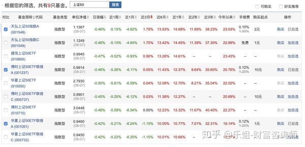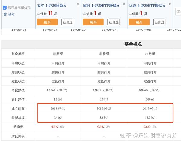 那这样下来,就只剩下天弘上证50、博时上证50ETF联接以及华夏上证ETF联接可以选择。
