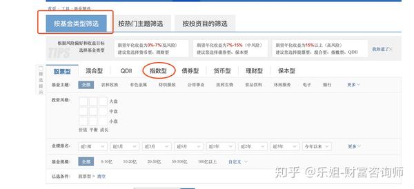 第3⃣️步,按照【基金类型】筛选,选择【指数型】