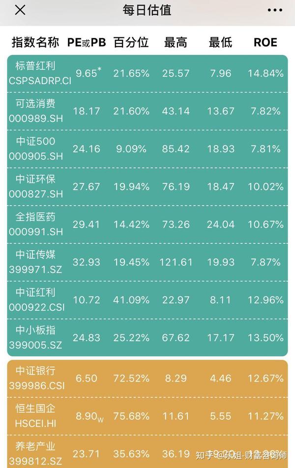 (2)根据以上自己选择的指数基金,对照估值表,在低估值区域时候买入。